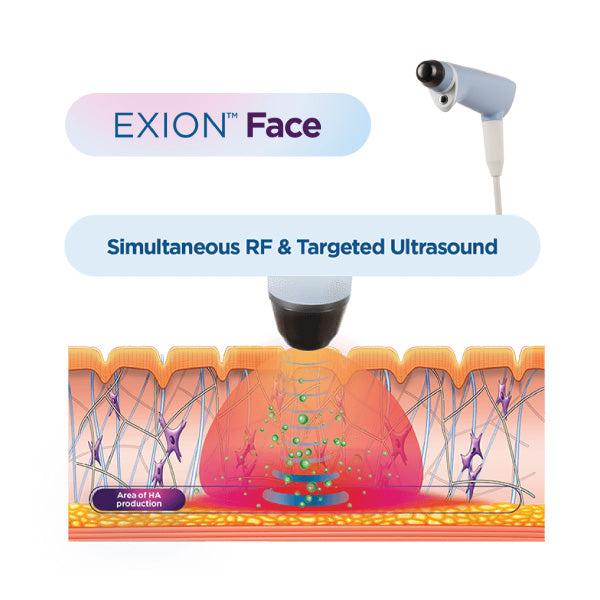 Utilizing a patented blend of Monopolar Radiofrequency and Targeted Ultrasound, to stimulate the deep layers of the skin. The patented technology treats the entire dermis, applying thermal and mechanical stress to fibroblasts, while the synergy of targeted ultrasound and monopolar RF boosts natural synthesis of hyaluronic acid.